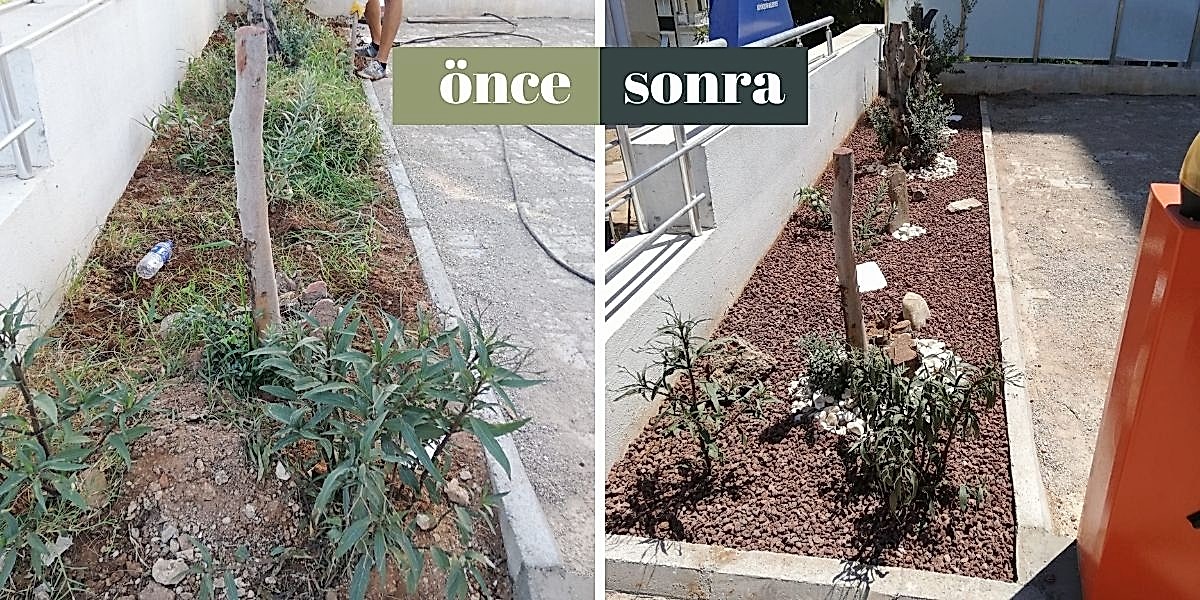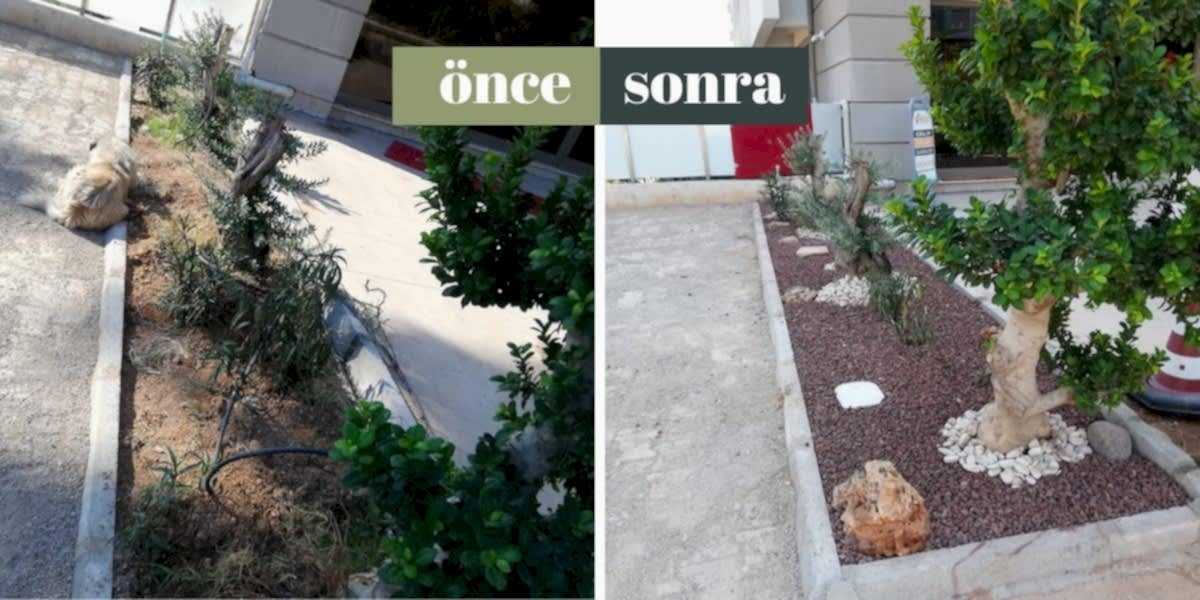Lara İhsan Bey Konutları Bahçe temizlik ve düzenleme işlerini yaptık.